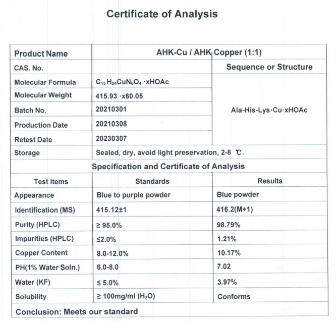 Sequence: | Ala-His-Lys·Cu·xHOAc |